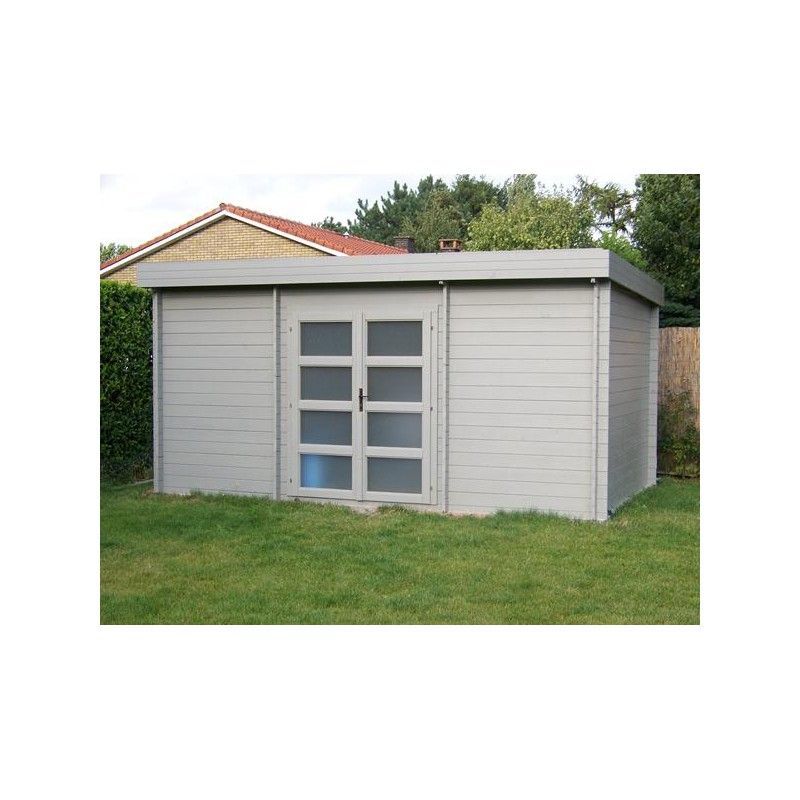 Grand abri de jardin élégant et moderne avec une finition en profilés d'aluminium et caoutchouc synthétique EPDM. Idéal pour un grand stockage. Nous utilisons ici le sapin blanc du Nord.