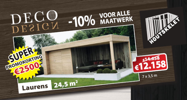 10 % korting op alle maatwerk tuinhuizen en alle gekozen opties