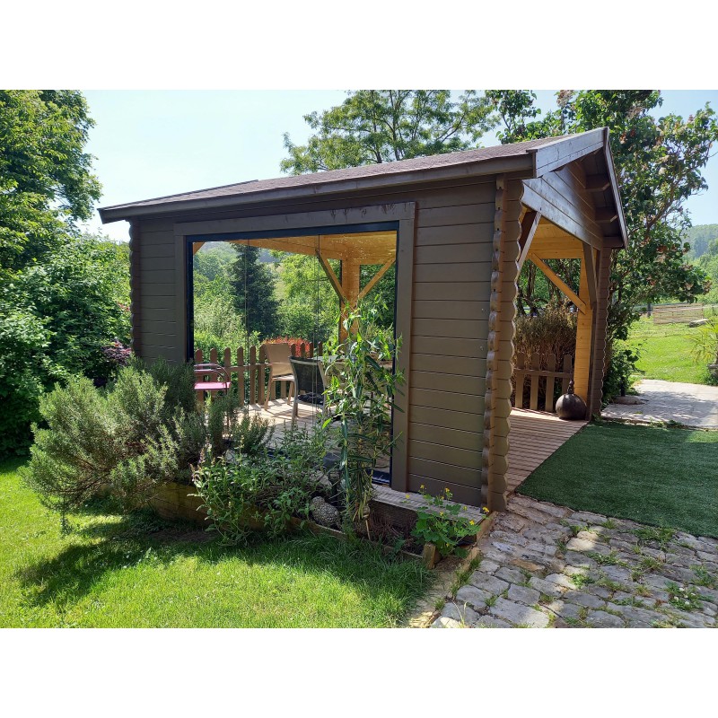 Breng sfeer en comfort in uw tuin met deze open tuinberging van massief hout. Het elegante ontwerp, met een combinatie van glazen wanden en open ruimte, biedt bescherming tegen weer en wind terwijl u toch geniet van licht en openheid. De stevige stapelbouwconstructie zorgt voor een uitstekende stabiliteit en een natuurlijke integratie in uw tuin.